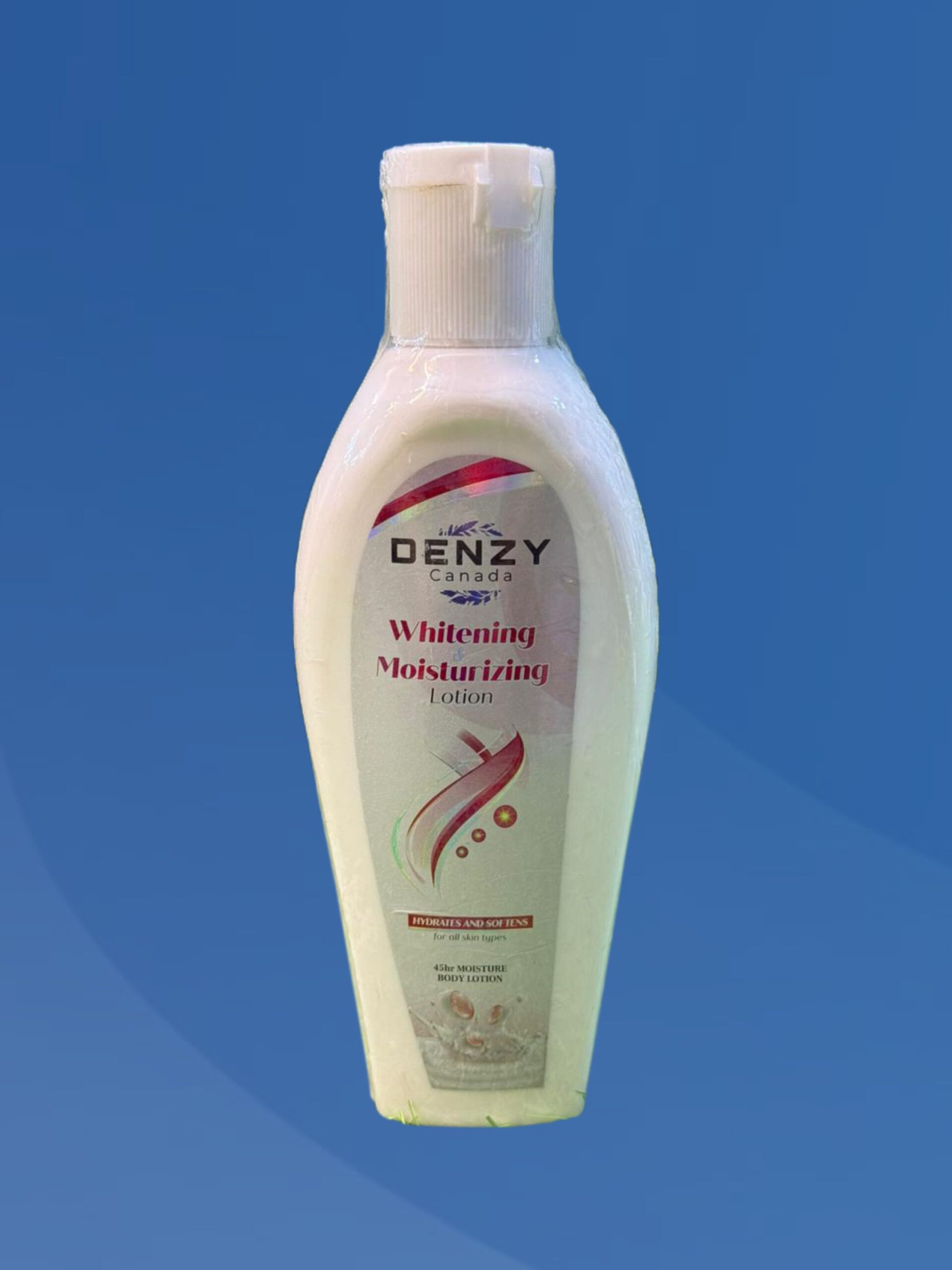 Denzy Canada Whitening Moisturizing Lotion is a nourishing daily skincare lotion designed to deeply hydrate and brighten your skin. Its advanced formula helps improve skin tone, reduce dullness, and promote a naturally radiant glow while keeping your skin soft and smooth all day.